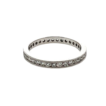 Lady's diamond eternity band in 14k white gold containing 0.60 carats total weight of round brilliant diamonds, G-H color, VS-SI clarity set in 14k white gold with milgrain edge.