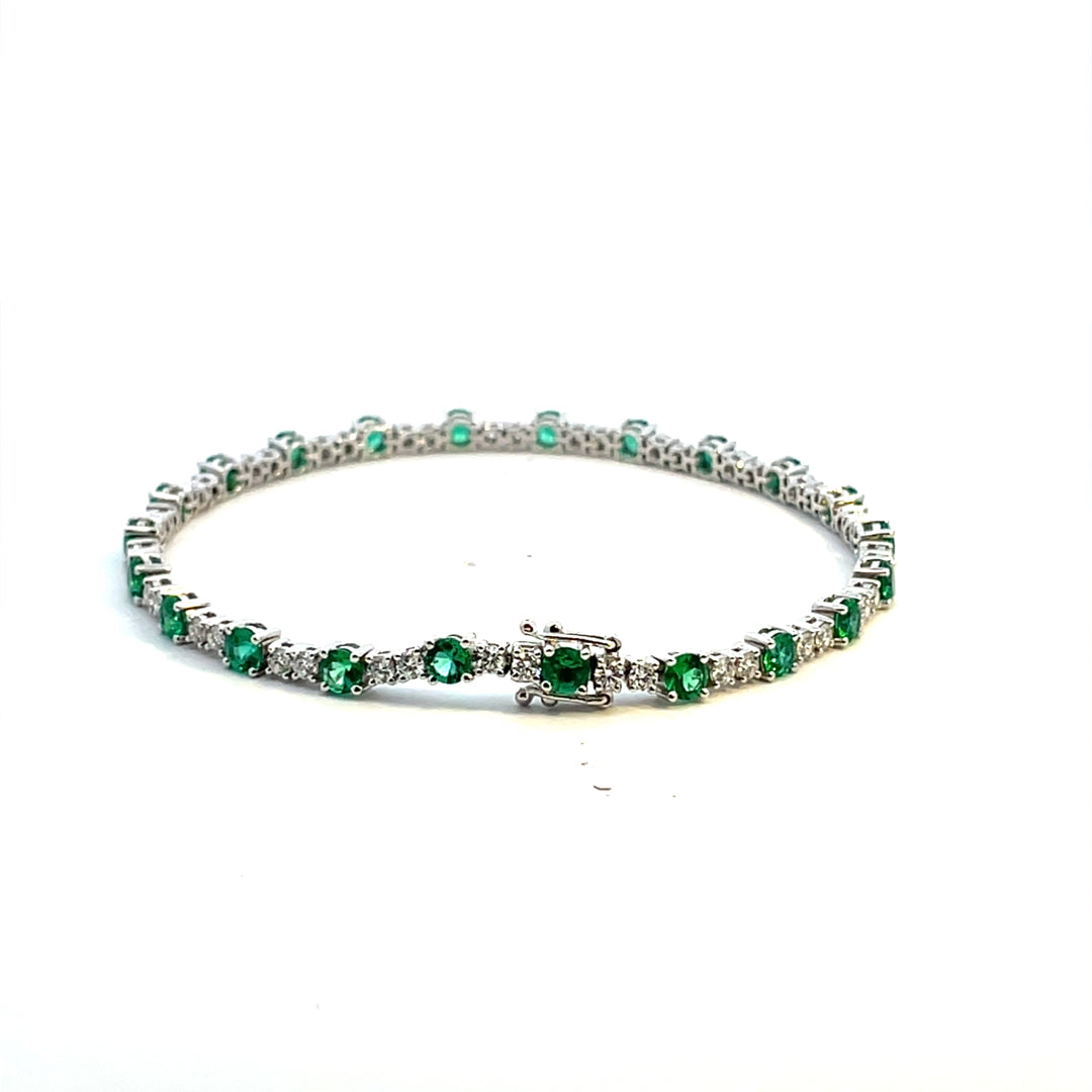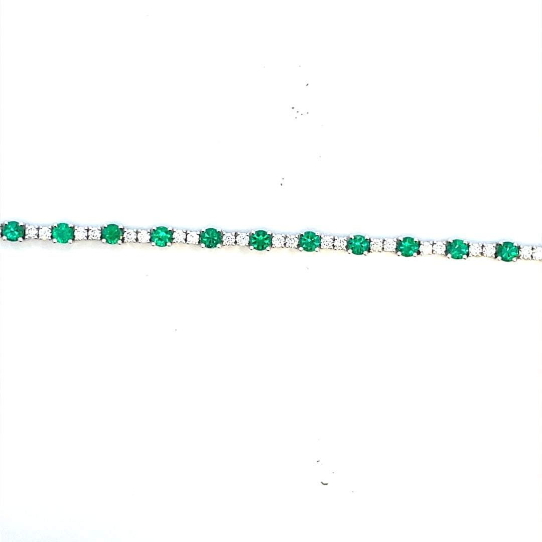 18Kt White Gold Emerald And Diamond Bracelet. The Bracelet Contains 22 Round Emeralds With A Total Weight Of 3.08Cts, And 44 Round Brilliant Cut Diamonds With A Total Weiht Of 1.54Cts. The Diamonds Have A Clarity Of Vs And The Color Is F.