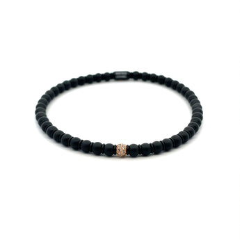 BLACK CERAMIC STRECH BRACELET WITH AN 18KT ROSE GOLD BEAD SET WITH