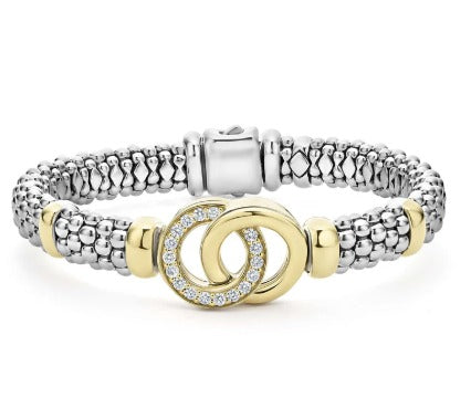 7" CAVAIR STERLING SILVER AND 18KT YELLOW GOLD INTERLOCKING DIAMOND BRACELET