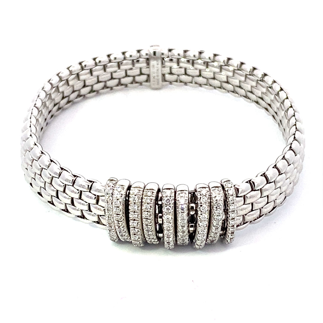 18KT WHITE GOLD STRETCH LINK BRACELET WITH 9 DIAMOND RONDELS