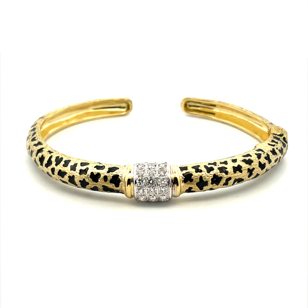 18KT YELLOW GOLD AND BLACK ENAMELED DIAMOND CUFF STYLE BANGLE BRACELET
