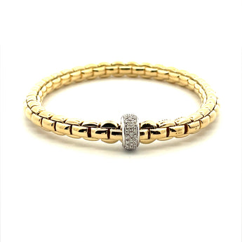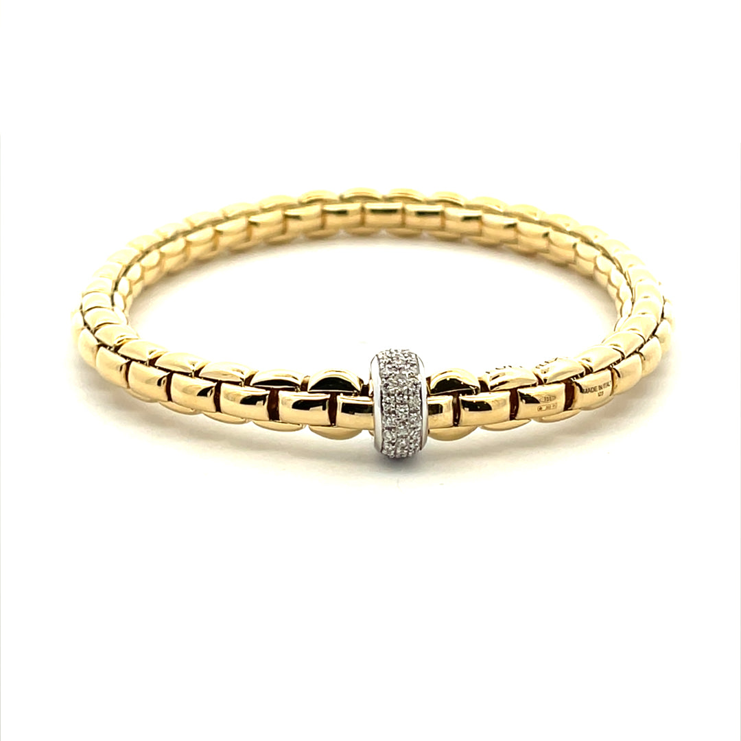 18KT YELLOW GOLD FLEXABLE LINK BRACELET WITH A PAVE SET DIAMOND RONDEL
