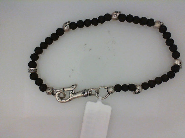 8" Beaded Bracelet Wiht 5 Sterling Silver Skull Beads