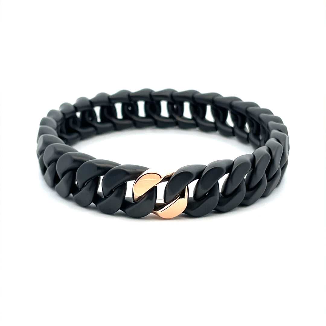 BLACK CERAMIC CURB LINK STRETCH BRACELT WITH