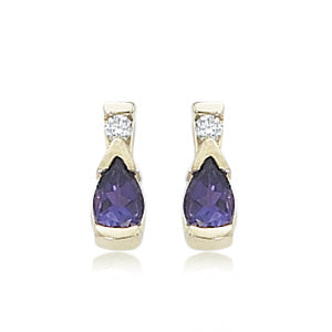 14Kt Yellow Gold Amethyst And Diamond Earrings. The earrings contain 2 Pear Shape Amethyst and 2 Round Brilliant Cut Diamonds Totaling .08cts