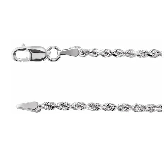18" 14KT WHITE GOLD 1.8MM DIAMOND CUT ROPE CHAIN WITH A LOBSTER CLAW CLASP