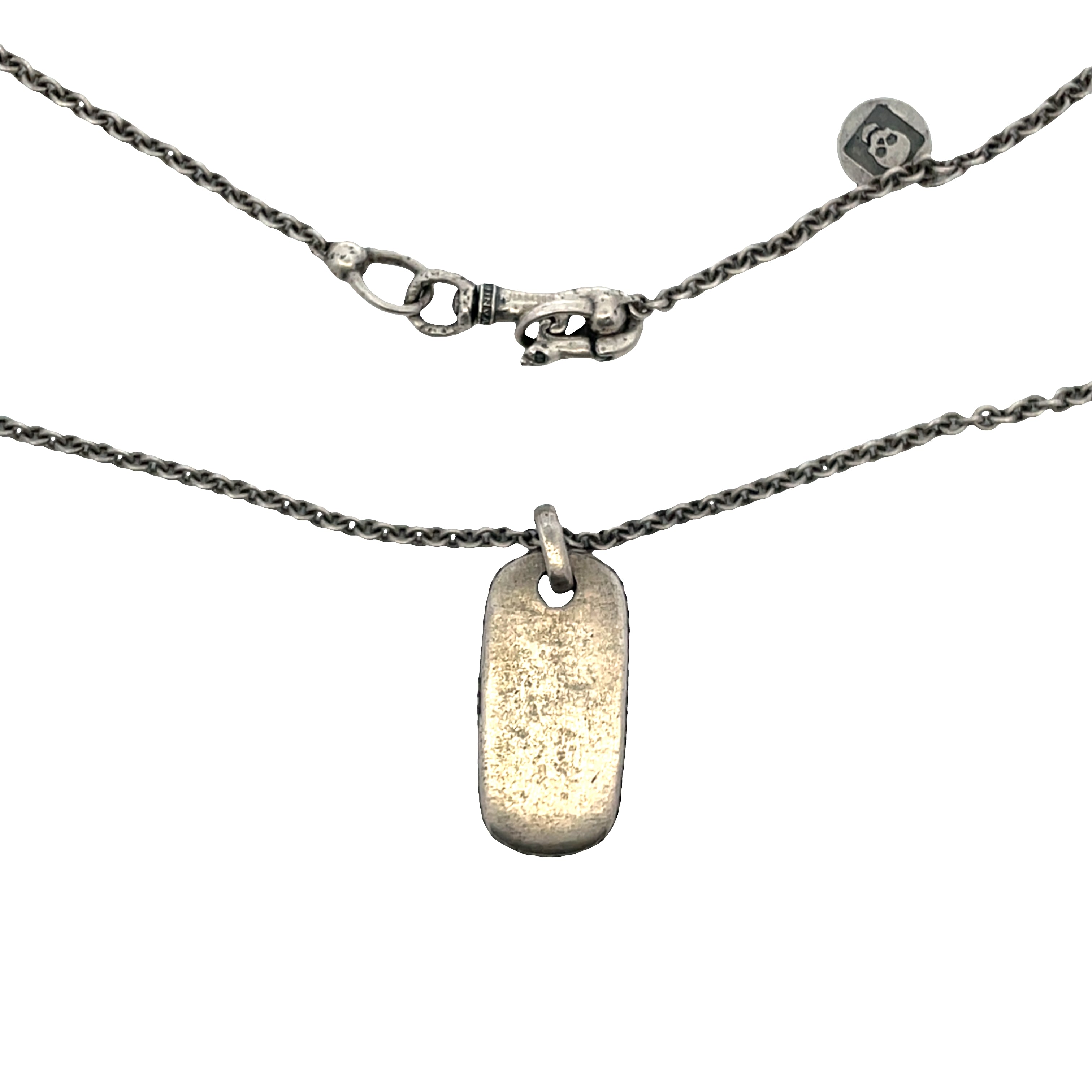 24" Distressed Sterling Silver Cable Link Chain With A Dog Tag Pendant