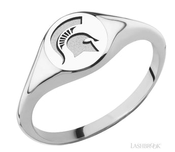 COLLEGIATE COLLECTION MSU 10K White Gold Small Round Signet Ring with Spartan Helmet