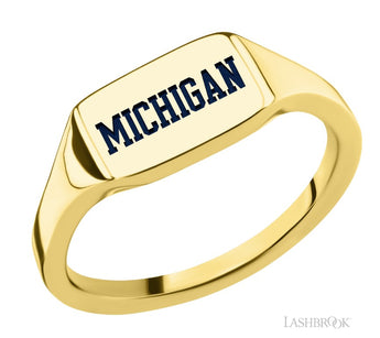 COLLEGIATE COLLECTION U of M Small 10K Yellow Gold Rectangular Signet Ring with Blue Accent