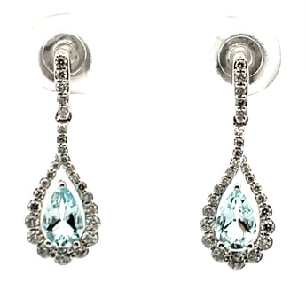 14KT WHITE GOLD AQUAMARINE AND DIAMOND FASHION EARRINGS