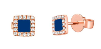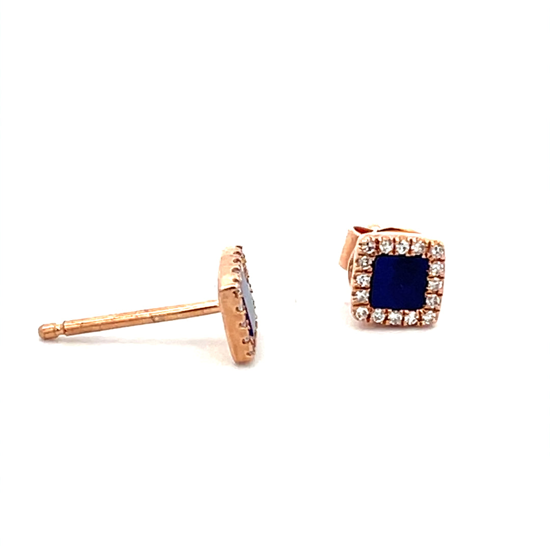 14KT ROSE GOLD LAPIS AND DIAMOND FASHION EARRINGS