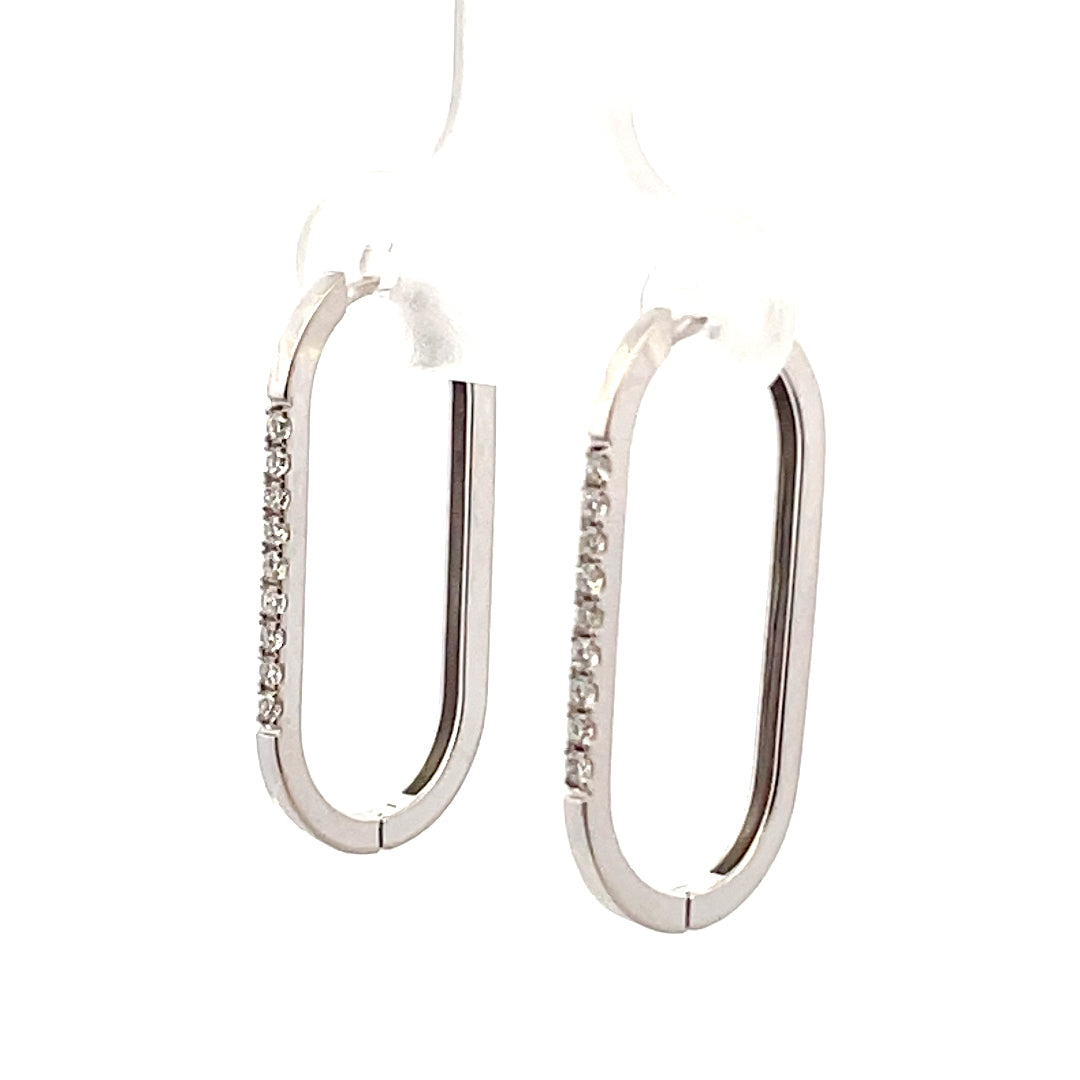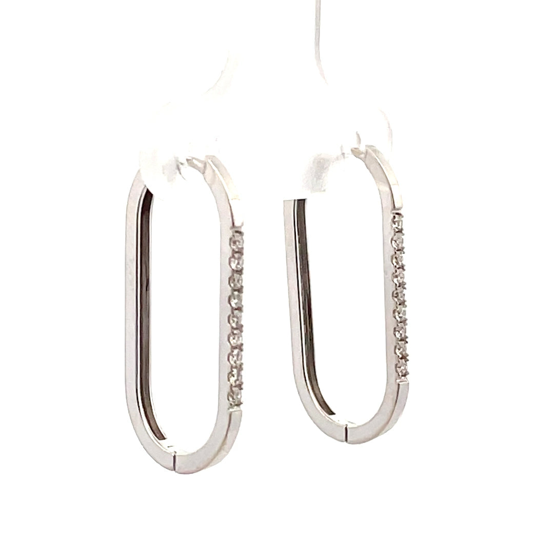 14KT WHITE GOLD OVAL DIAMOND HOOP EARRINGS