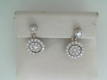 THE EARRINGS CONTAIN 2 BEZEL SET ROUND BRILLIANT DIAMONDS = .40CTS