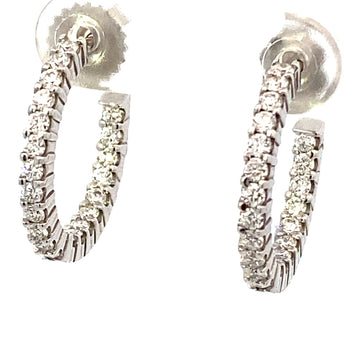 One pair of 14 karat white gold, diamond, post earrings containing twenty-four diamonds, round brilliant cut, shared prong set, weighing 0.96 carats total weight, G-H in color, and SI1-SI2 in clarity.