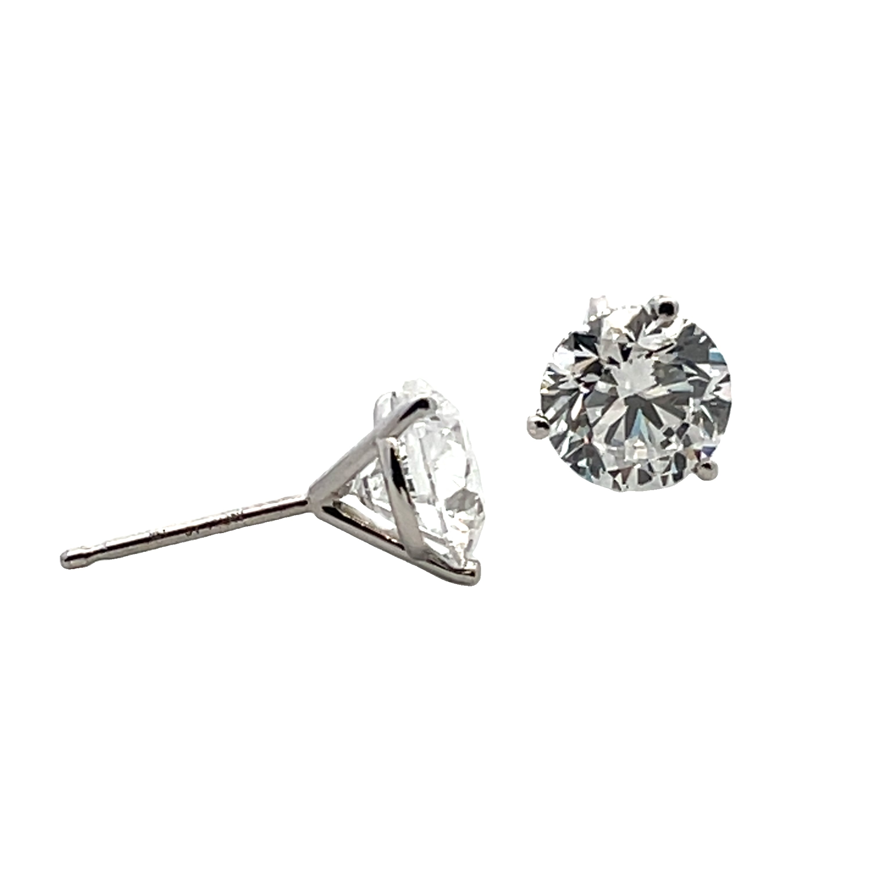 14KT WHITE GOLD 3 PRONG LAB GROWN DIAMOND STUD EARRINGS