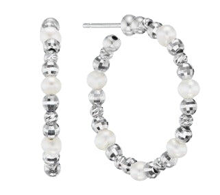 Small Diamond Cut Platinum Fresh Water Pearl Earrings