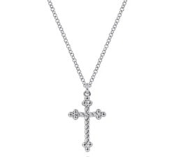 14Kt White Gold Twisted Cross Pendant Necklace
