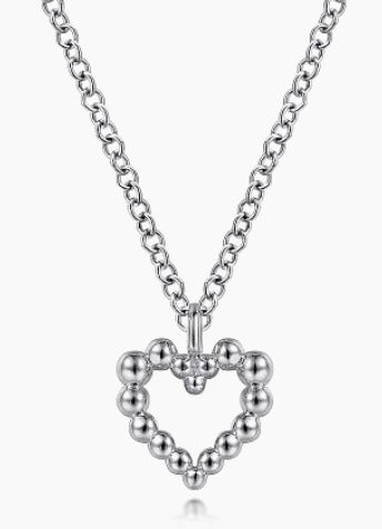 17.5" Sterling Silver Necklace With A Beaded Heart Pendant