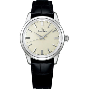 Stainless Steel Grand Seiko Watch. Some Of The Watch Features Include A Mechanical Manual Winding Movement With A Power Reserve Up To 72 Hours, Sapphire Crystal With An Anti-Reflective Coating On Inner Surface, Champagne Dial, On A Black Crocodile Strap