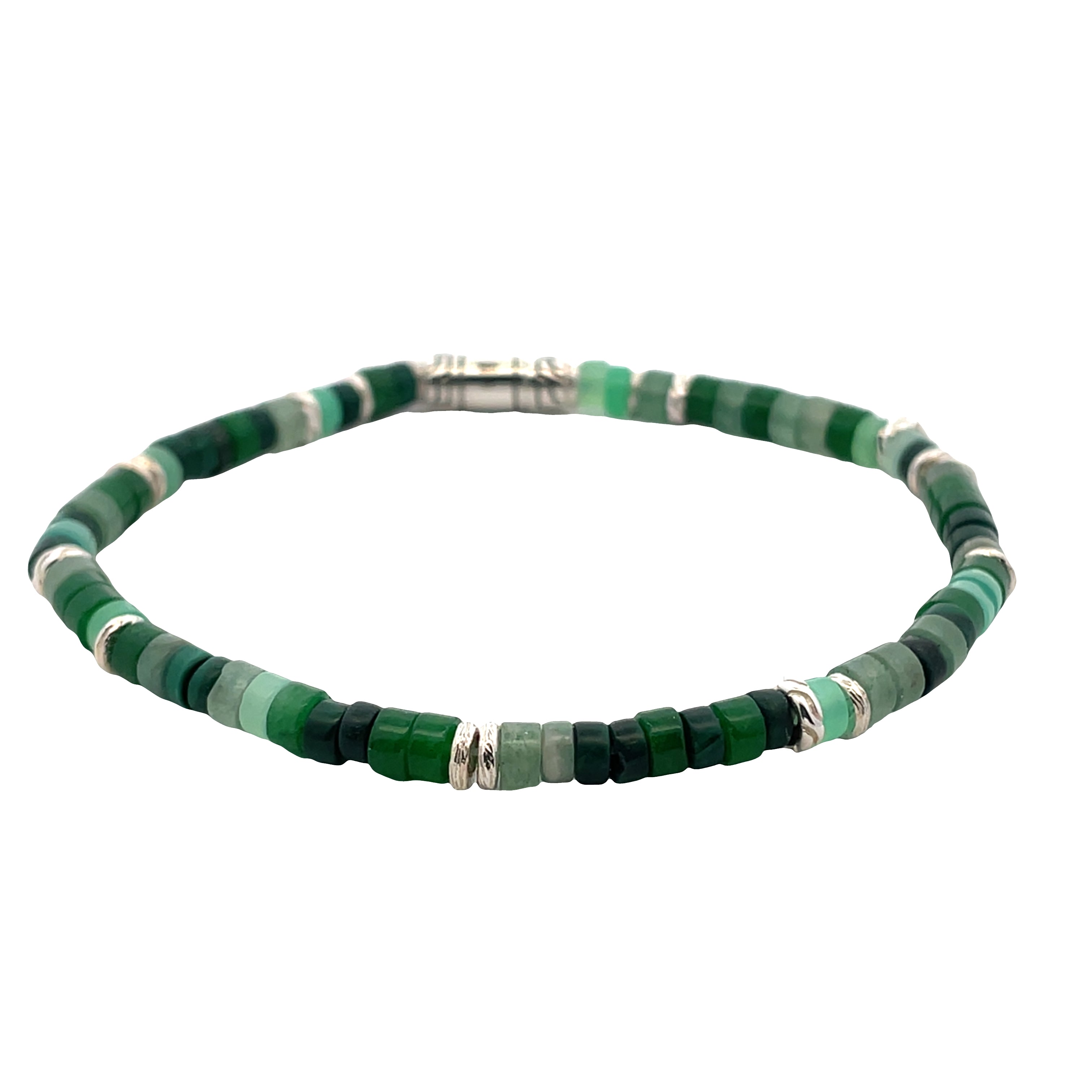 The Bracelet Contains Malachite, Green Quartz, Aventurine, Chrysoprae And Emerald Beads