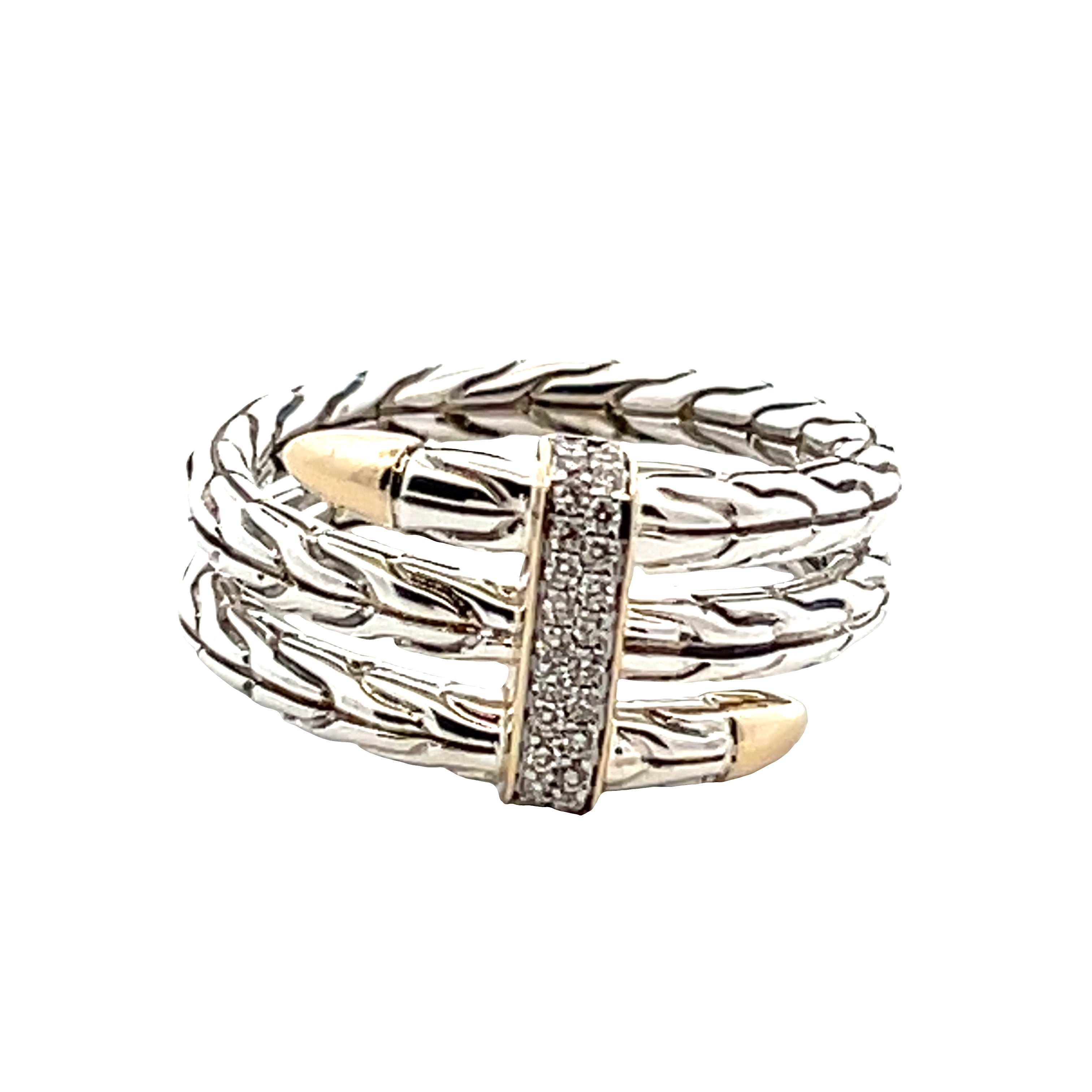 Sterling Silver And 14Kt Yellow Gold Spear Diamond Fashion Ring