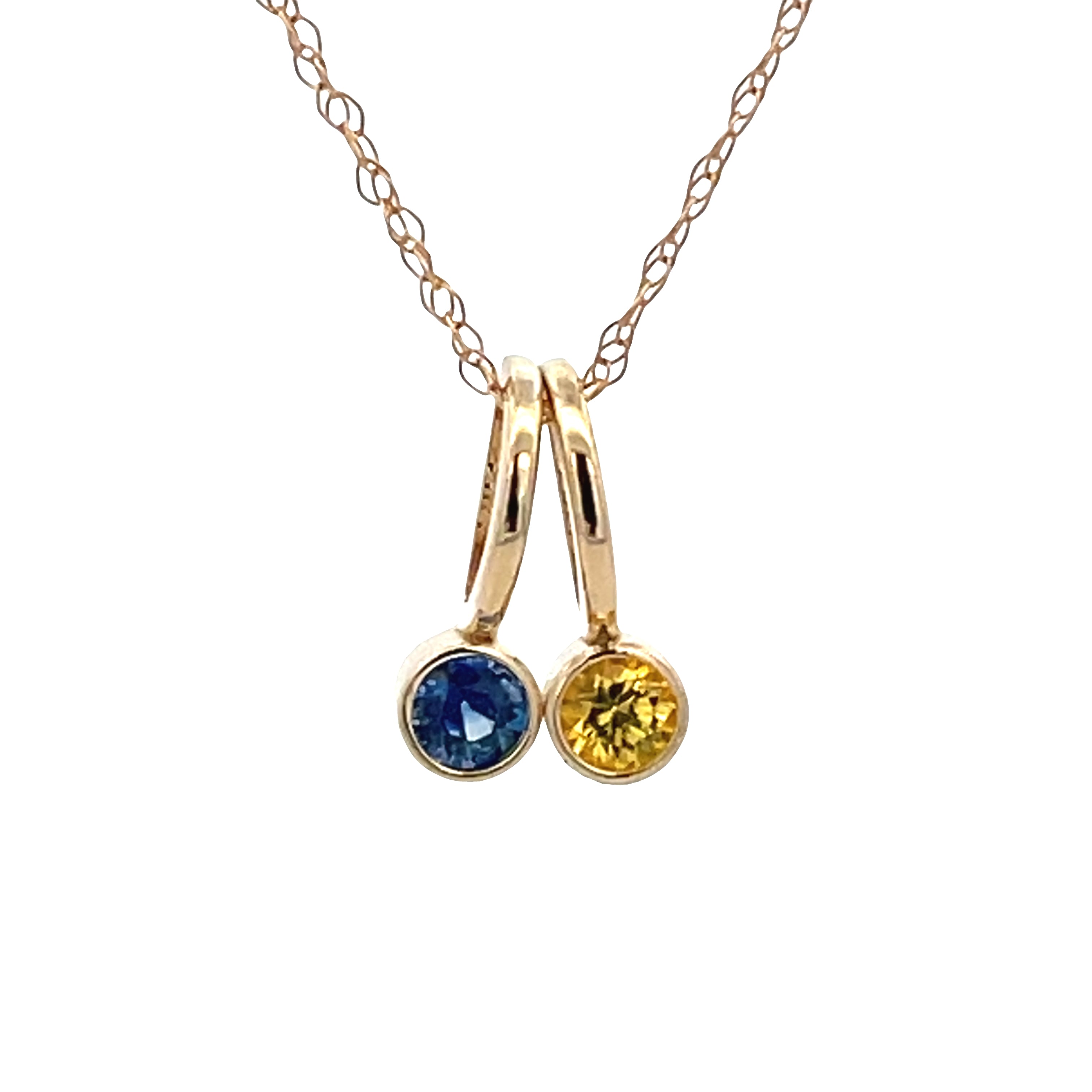 18" 14kt Yellow Gold Bezel Set Double Pendant Featuring 3mm Round Yellow And Blue Sapphires