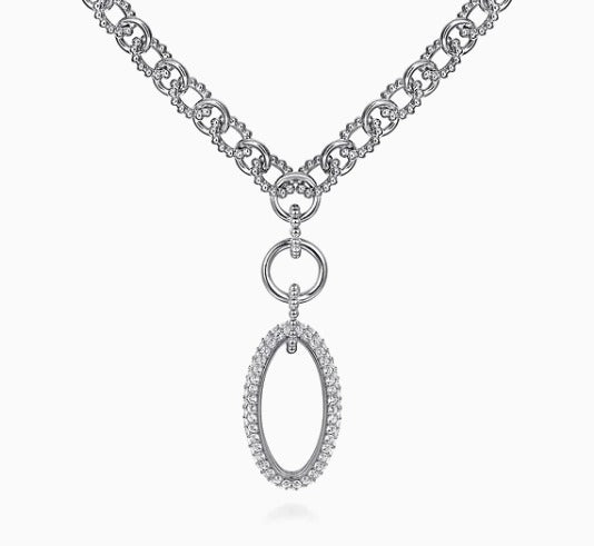 17" Sterling Silver White Sapphire Bujukan Link Chain Necklace