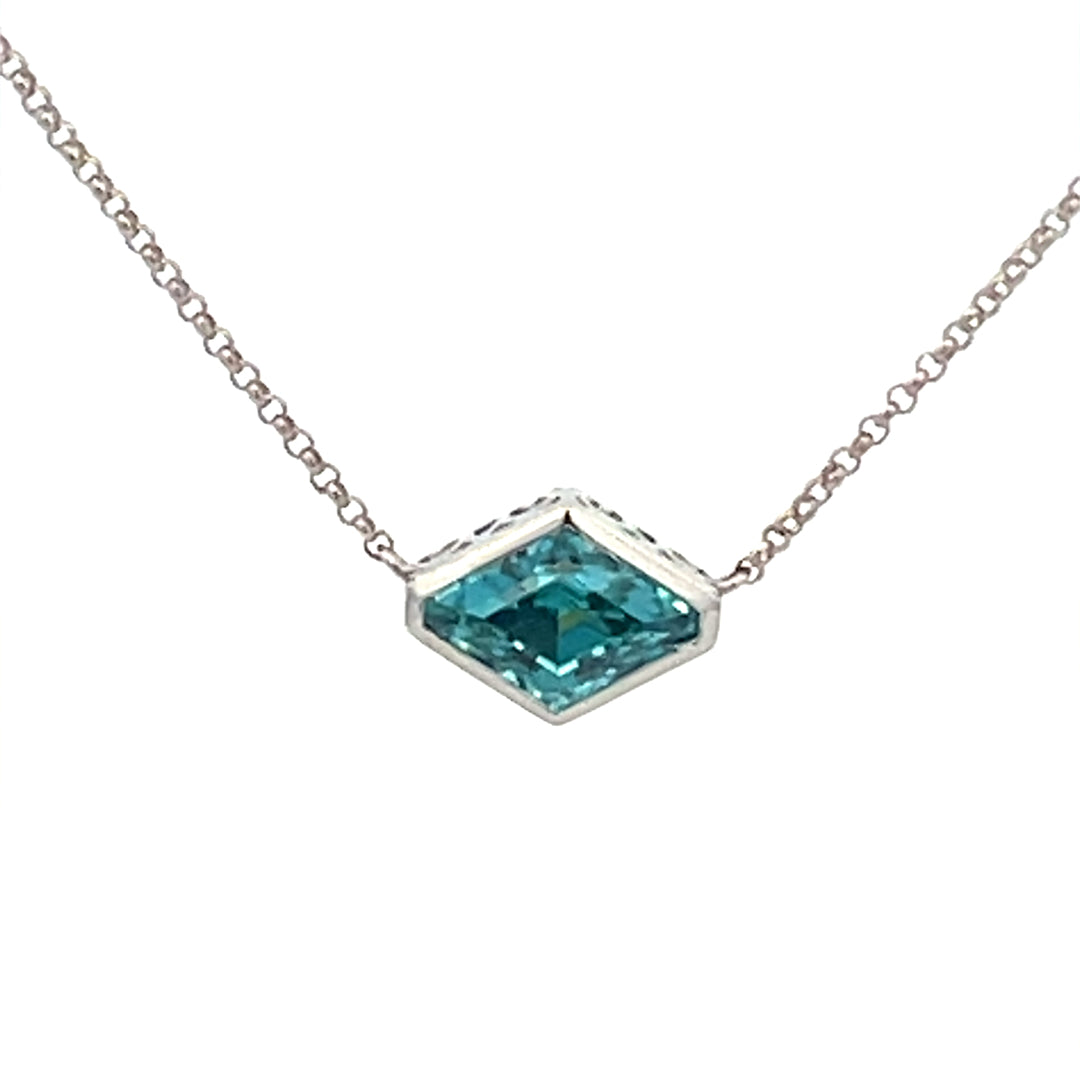 1 FANCY STEP CUT BLUE ZIRCON SET IN A BEZEL