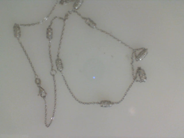 17" 18KT WHITE GOLD CABLE LINK WITH 9 BARREL SECTIONS WITH 18 PAVE SET DIAMONDS EACH