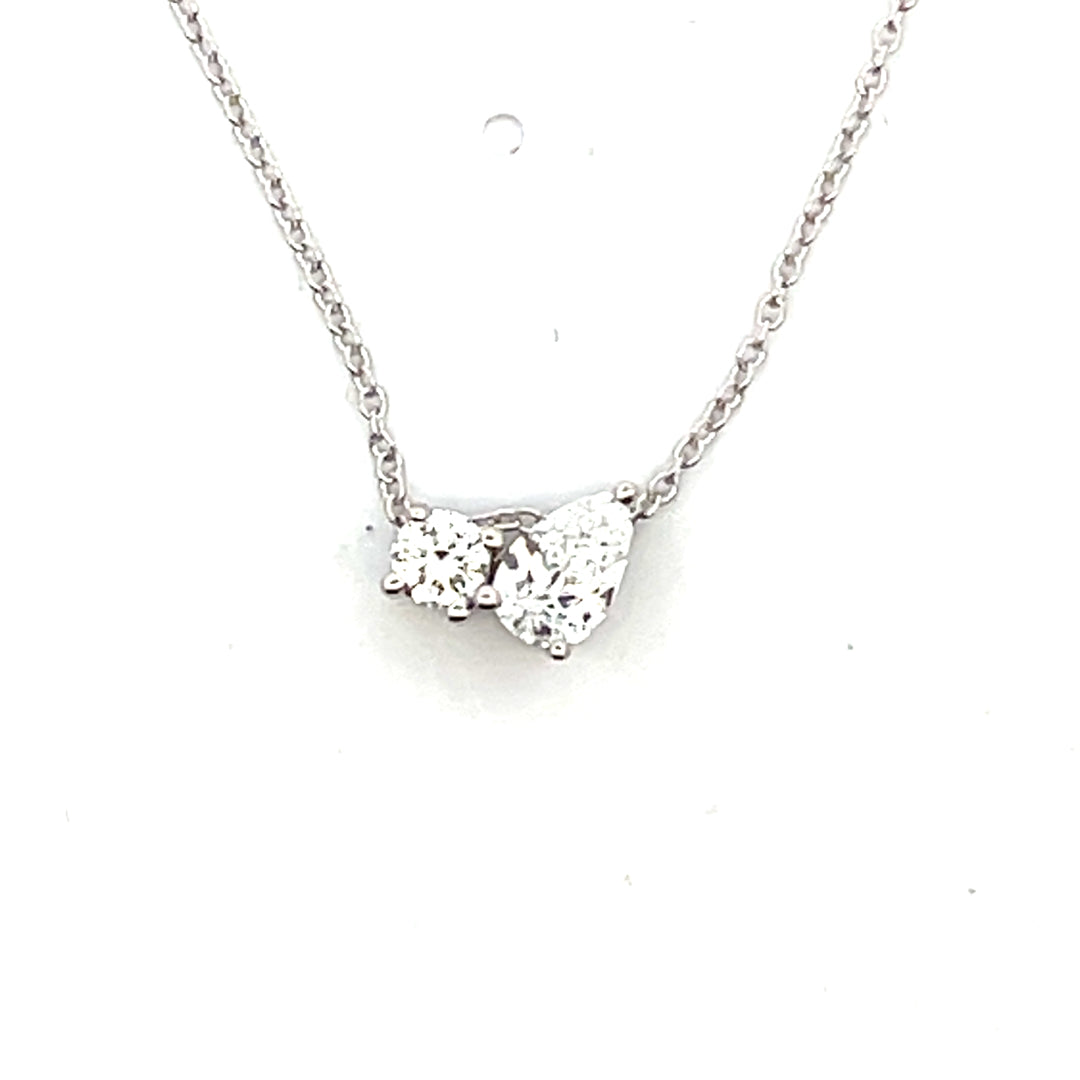 16" 18Kt White Gold Diamond Fashion Necklace. The Necklace Contains 1 Pear Shape Diamond Weighing .41Cts And 1 Round Brilliant Cut Diamond Weighing .17Cts. The Diamonds Have A Clarity Of Vs2-SI1 And The Color Is G