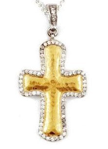 SS/24KT DIAMOND PAVE CROSS PENDANT