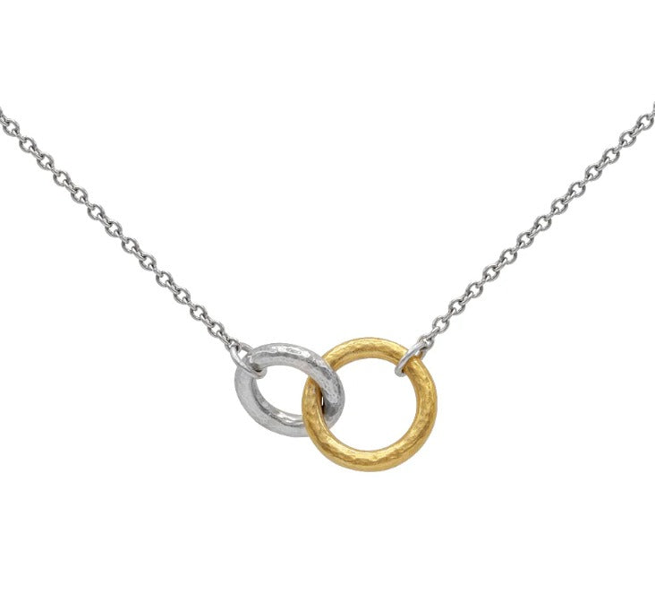 GOLD AND SILVER LINKS, ON 16-18" SILVER CHAIN