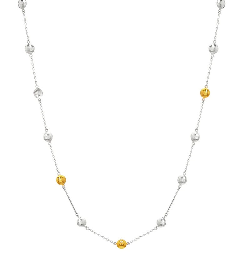 18" STERLING SILVER NECKLACE WITH 7MM GOLD BEADS