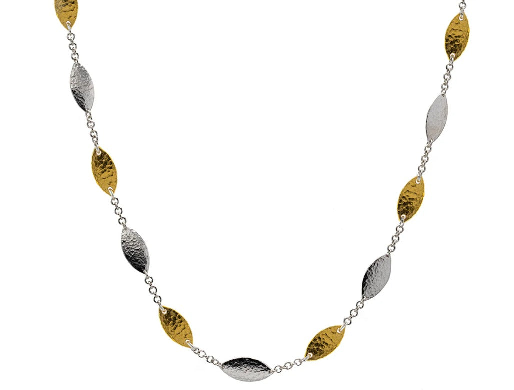 18" STERLING SILVER WILLOW LINK NECKLACE WITH ALTERNATING SILVER AND GOLD LINKS.