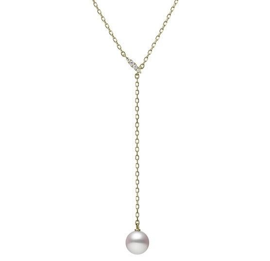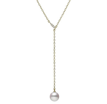 20" 18KT YELLOW GOLD LARIAT STYLE PEARL AND DIAMOND NECKLACE