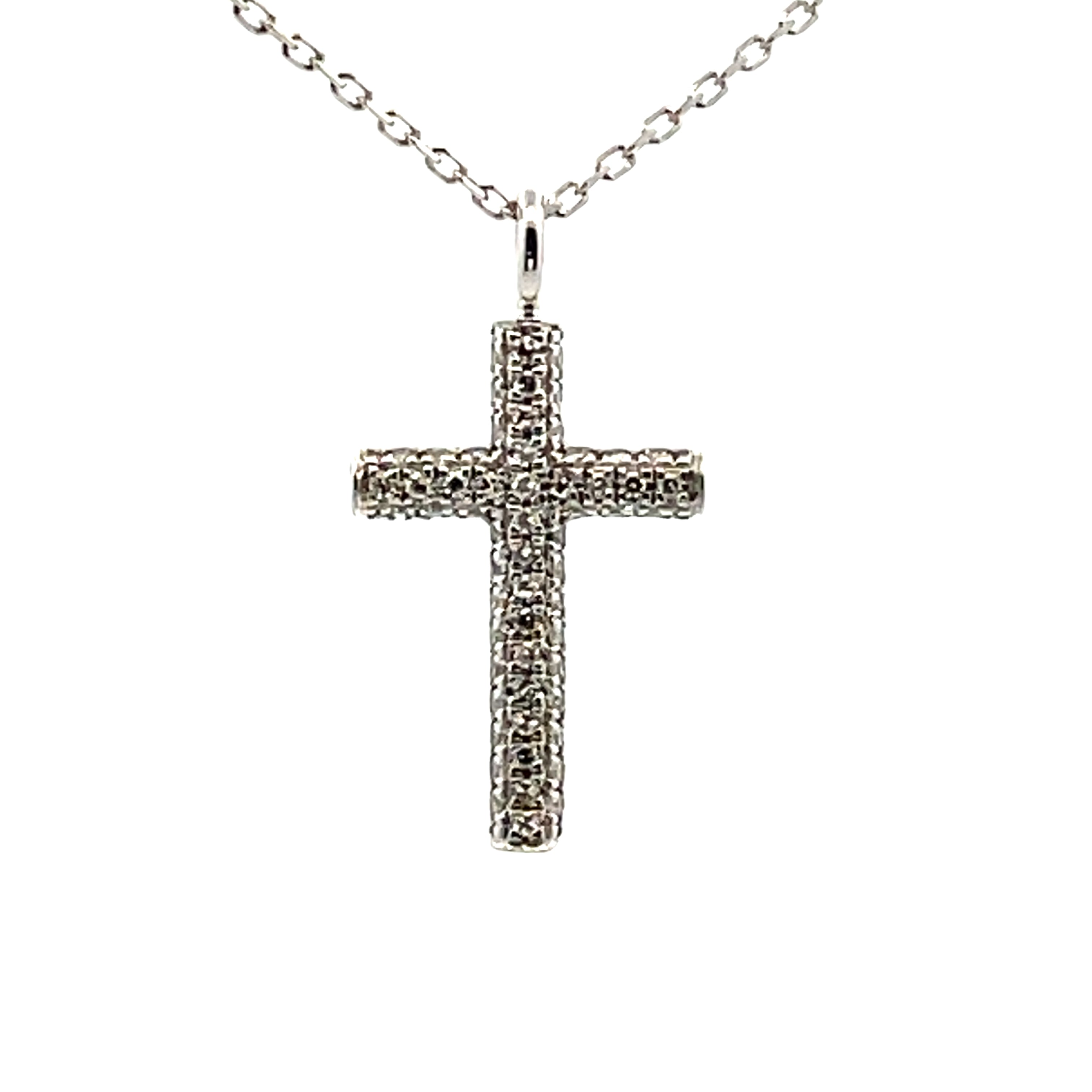 18" 14KT WHITE GOLD DIAMOND CROSS NECKLACE