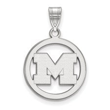 University of Michigan Sterling Silver Medium Size Circle Pendant with Cuttout Block Letter M
