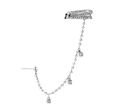 Designed to evoke a sense of magic and elegance, the Aurora Earcuff features tiny, glimmering platinum beads that hang delicately from a strand of carefully crafted platinum. Its unique design wraps gracefully around the ear, adding a touch of ethereal charm and modern sophistication. Whether worn alone as a statement piece or paired with other earrings for a more intricate look, the Aurora Earcuff is a versatile and enchanting accessory