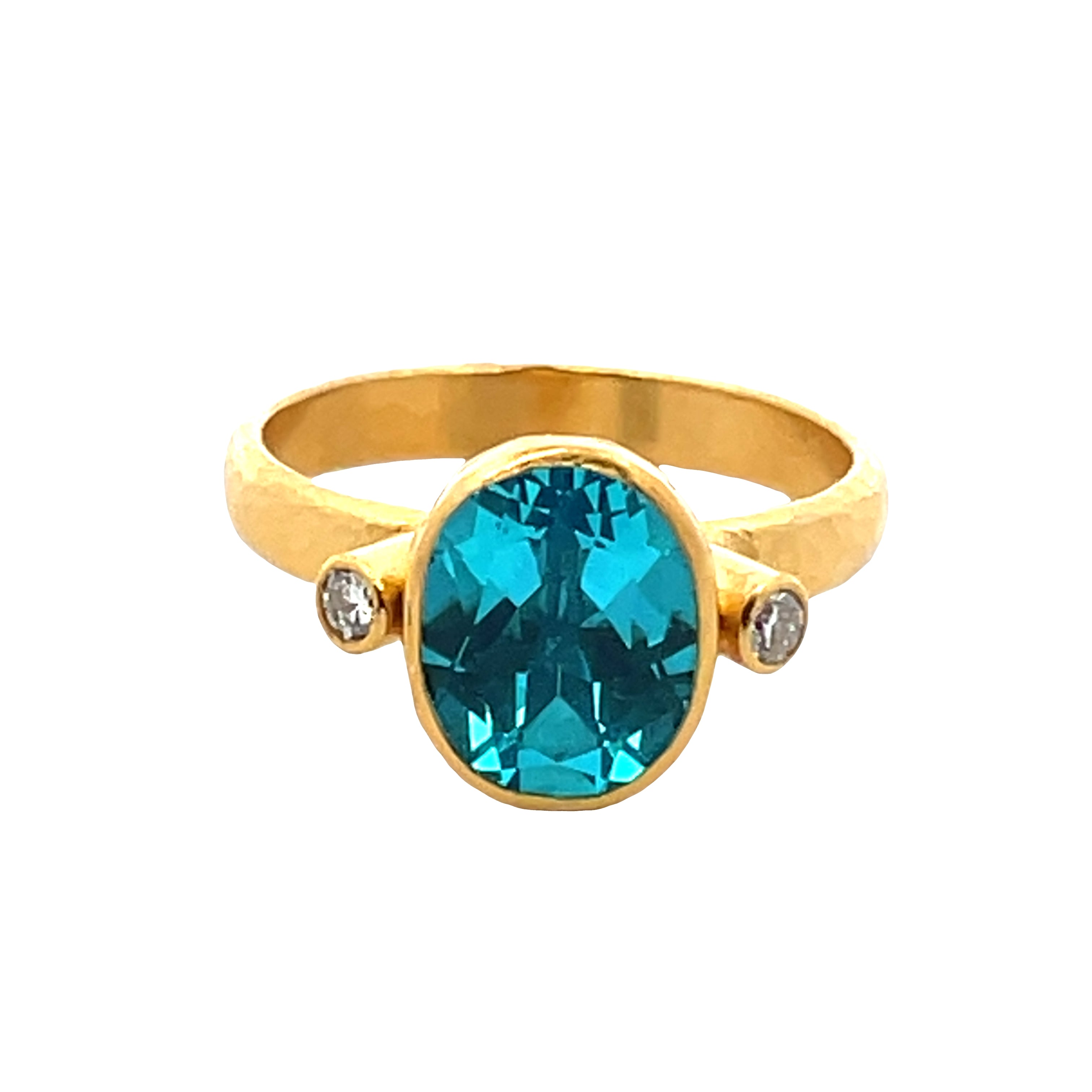22KT GOLD BLUE TOPAZ AND DIAMOND FASHION RING
