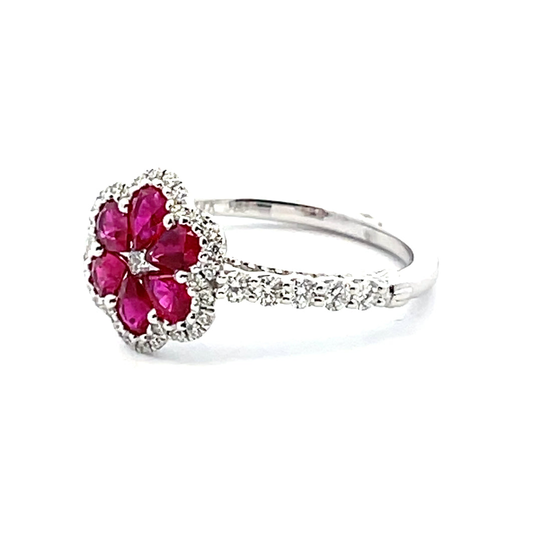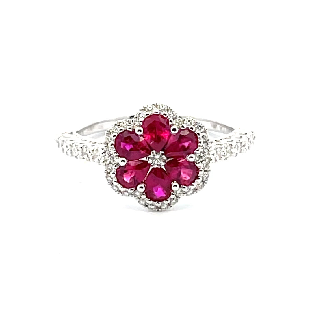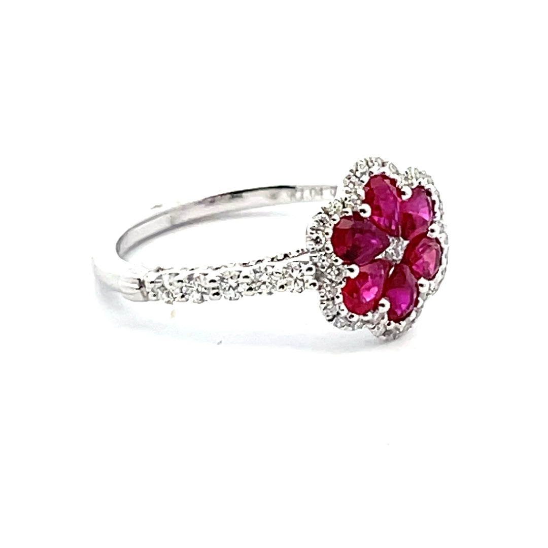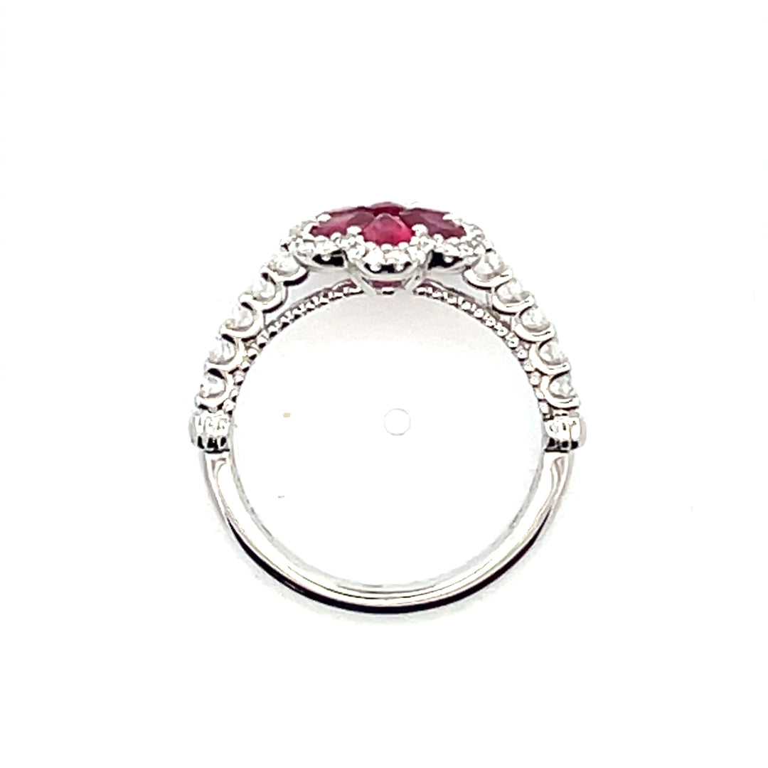 14KT WHITE GOLD RUBY AND DIAMOND RING.