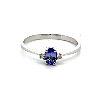 14KT WHITE GOLD TANZANITE AND DIAMOND RING