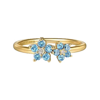 14K Yellow Gold Diamond And Blue Topaz Classic Ring With A Floral Design