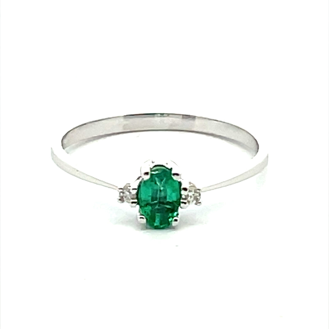 14KT WHITE GOLD EMERALD AND DIAMOND FASHION RING