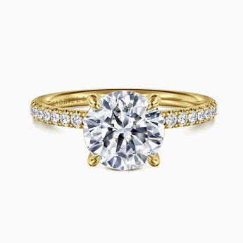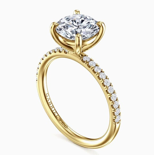 14K Yellow Gold Round Diamond Semi Mounting. The ring contains 20 Round Brilliant Cut Diamonds Totaling .20cts
