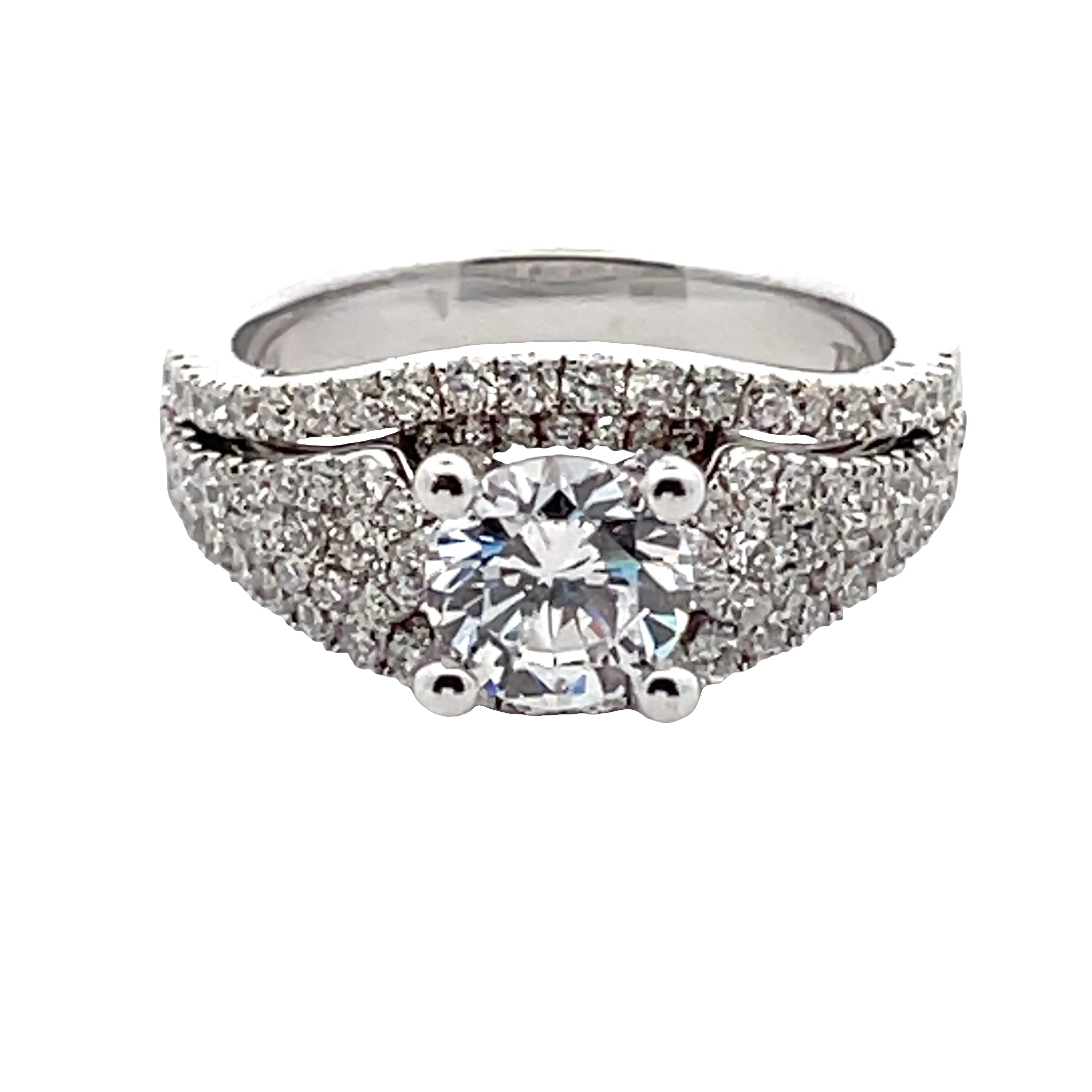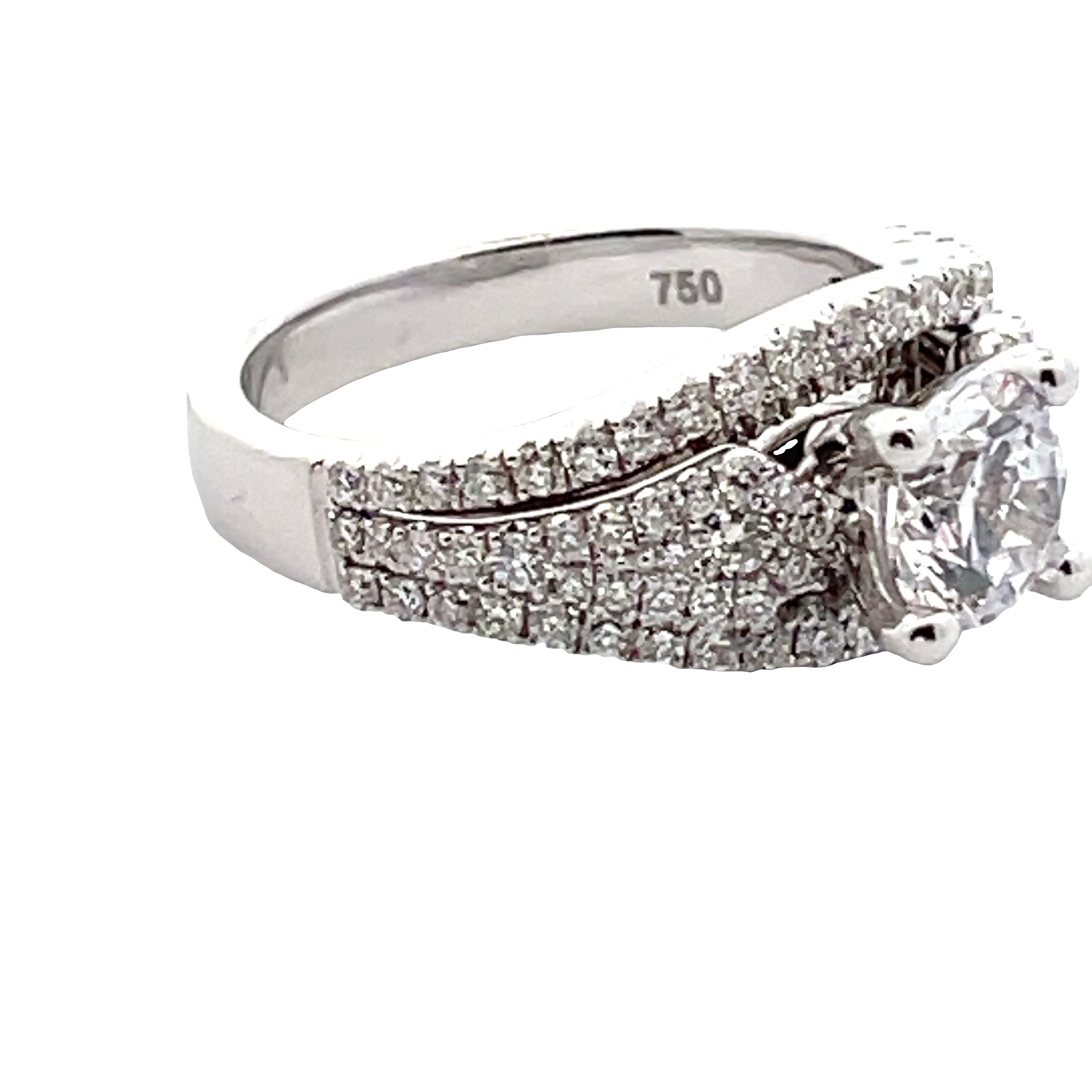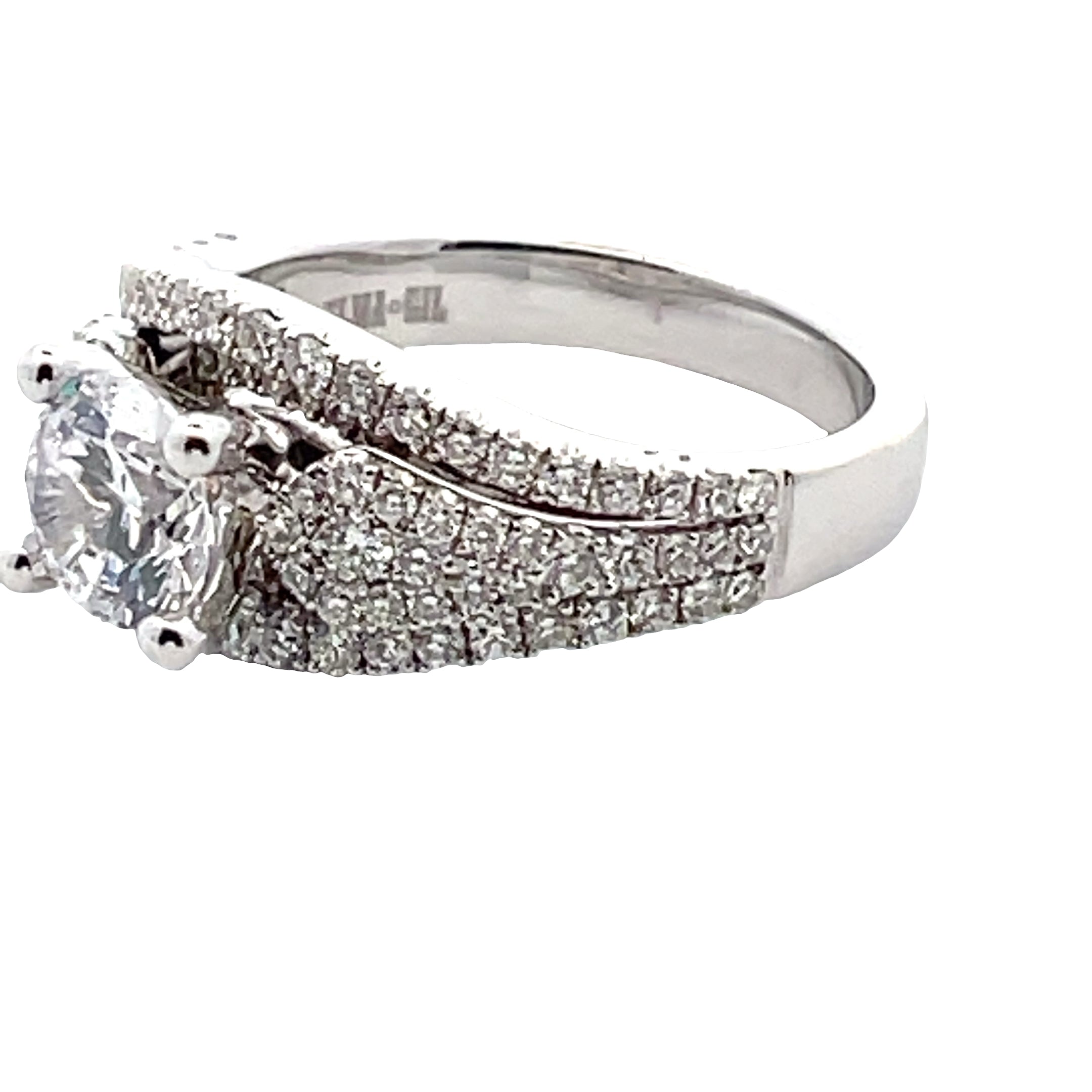 One lady’s 18 karat white gold diamond engagement ring designed by Elma Gil containing (98) round brilliant cut diamonds of G-H color, VS1-VS2 clarity. weighing 98=0.85 carats total weight, and are prong set in a split-shank design