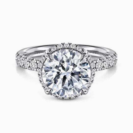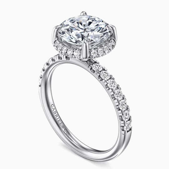 14K White Gold Round Hidden Halo Diamond Semi Mounting. The ring contains 34 Round Brilliant Cut Diamonds Totaling .44cts