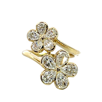 18KT YELLOW GOLD DOUBLE FLOWER DIAMOND BYPASS RING