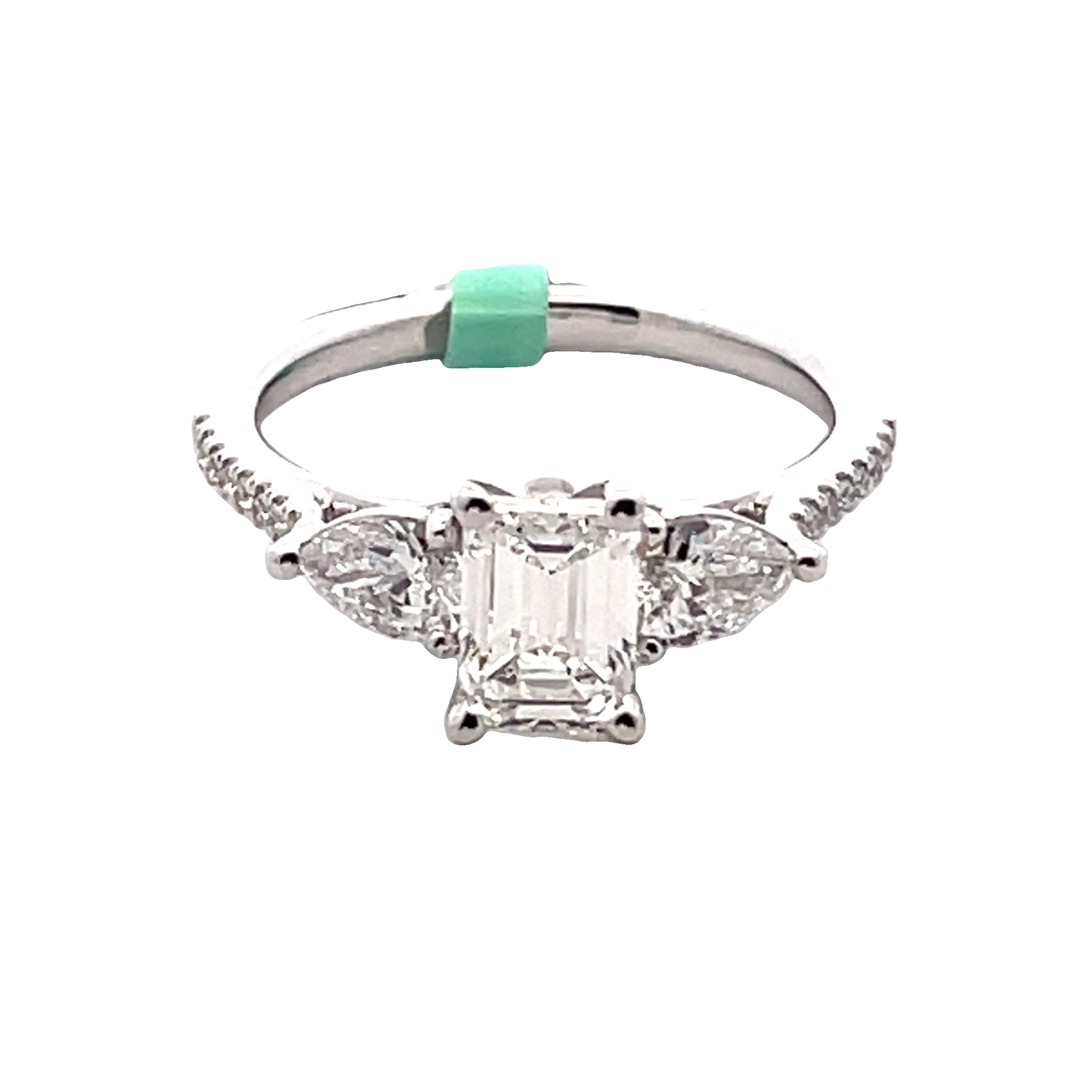 14Kt White Gold Lab Grown Emerald Cut Engagement Ring