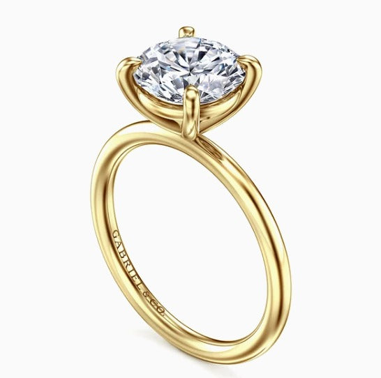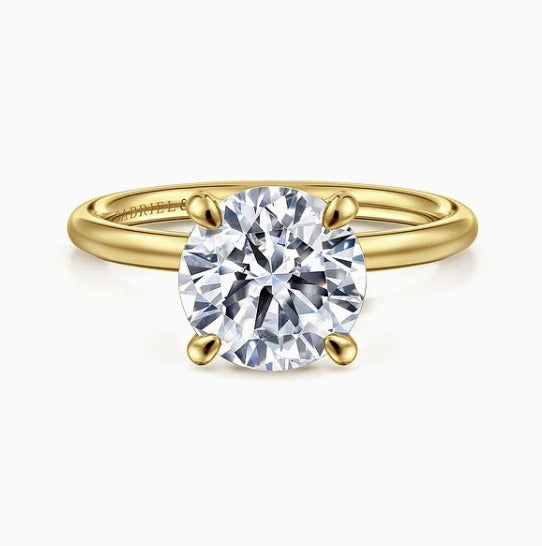 14K Yellow Gold Round Solitaire Diamond Engagement Ring